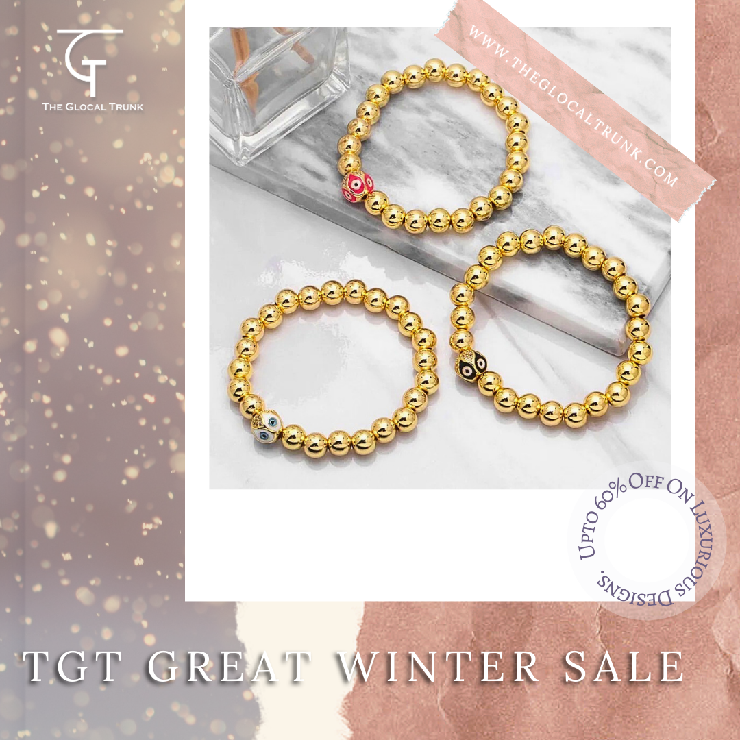 While necklaces take center stage for winter layering, don’t forget about your wrists. Layered bracelets are gaining popularity in 2023 as a versatile and stylish accessory. Mix and match different textures and materials, from beaded bracelets to metallic cuffs, to create a personalized and trendy wrist stack.The Glocal Trunk’s Winter Sale offers a diverse range of bracelets, allowing you to experiment with layering and express your unique style through your wrists.