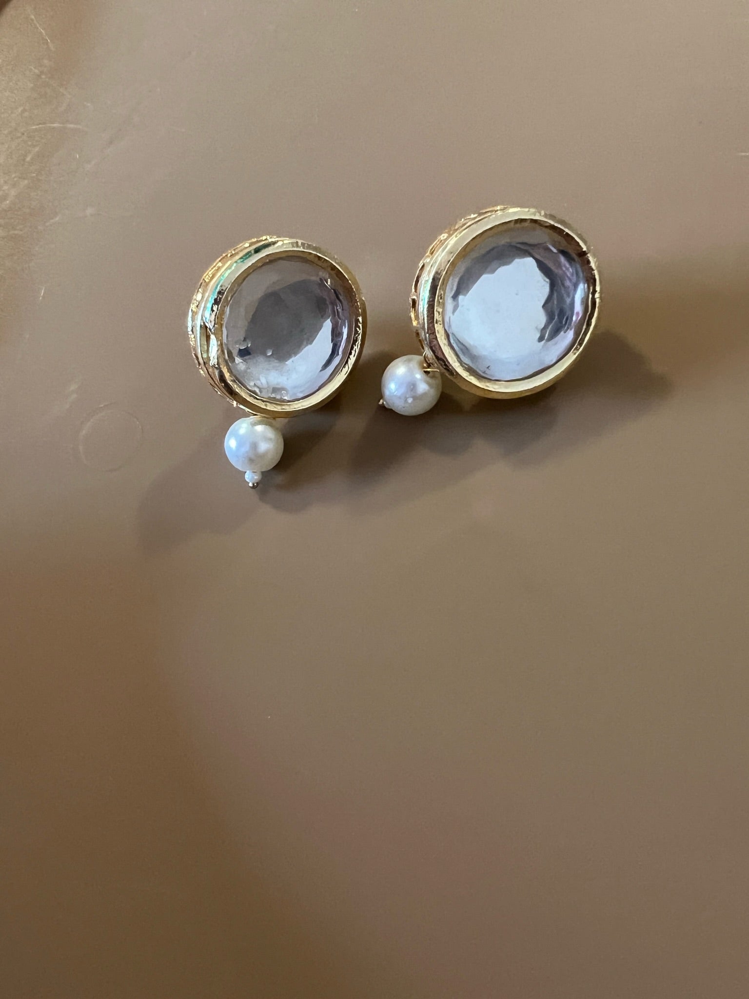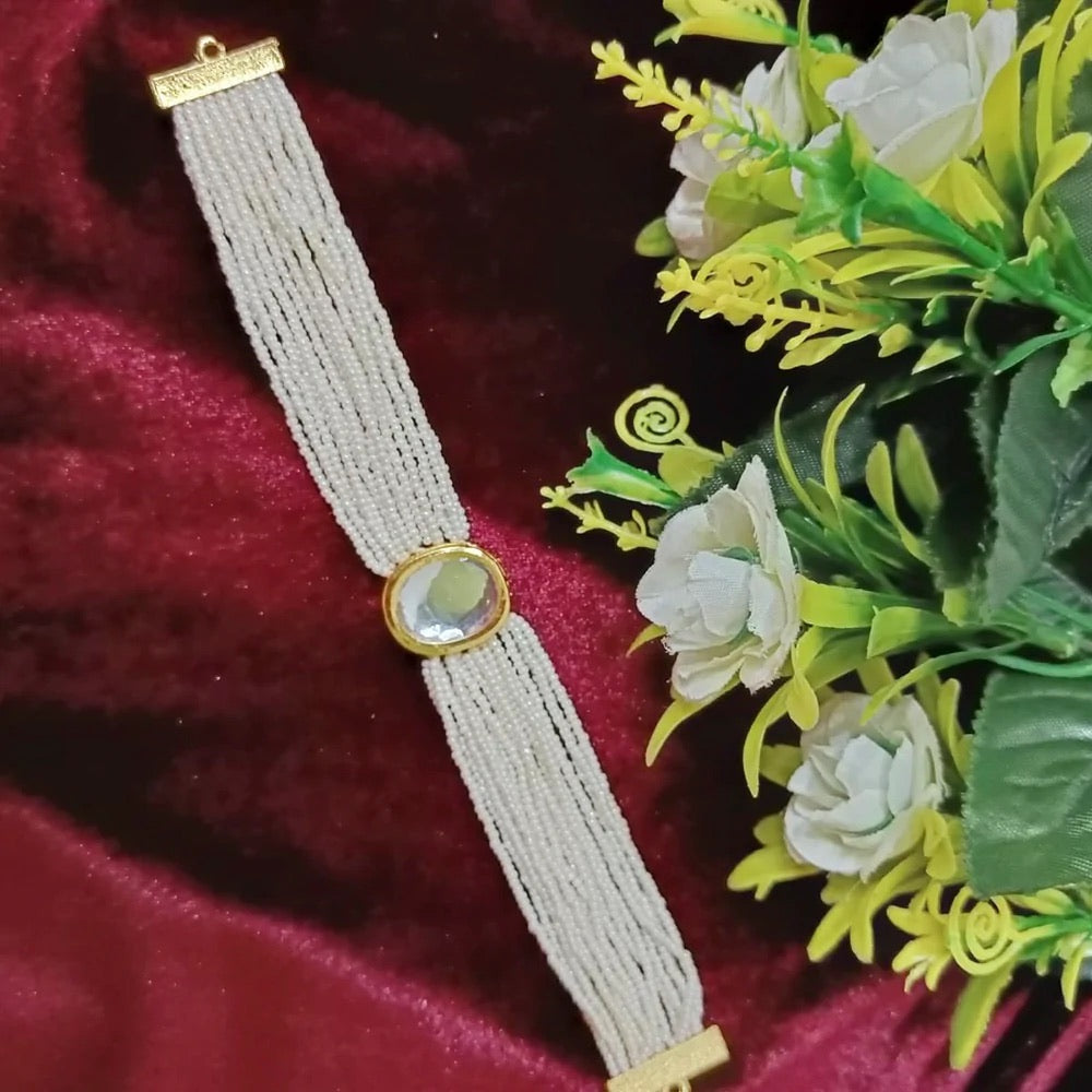 White Colour Gold Plated Imitation Pearl & Kundan Work Necklace With Earrings.