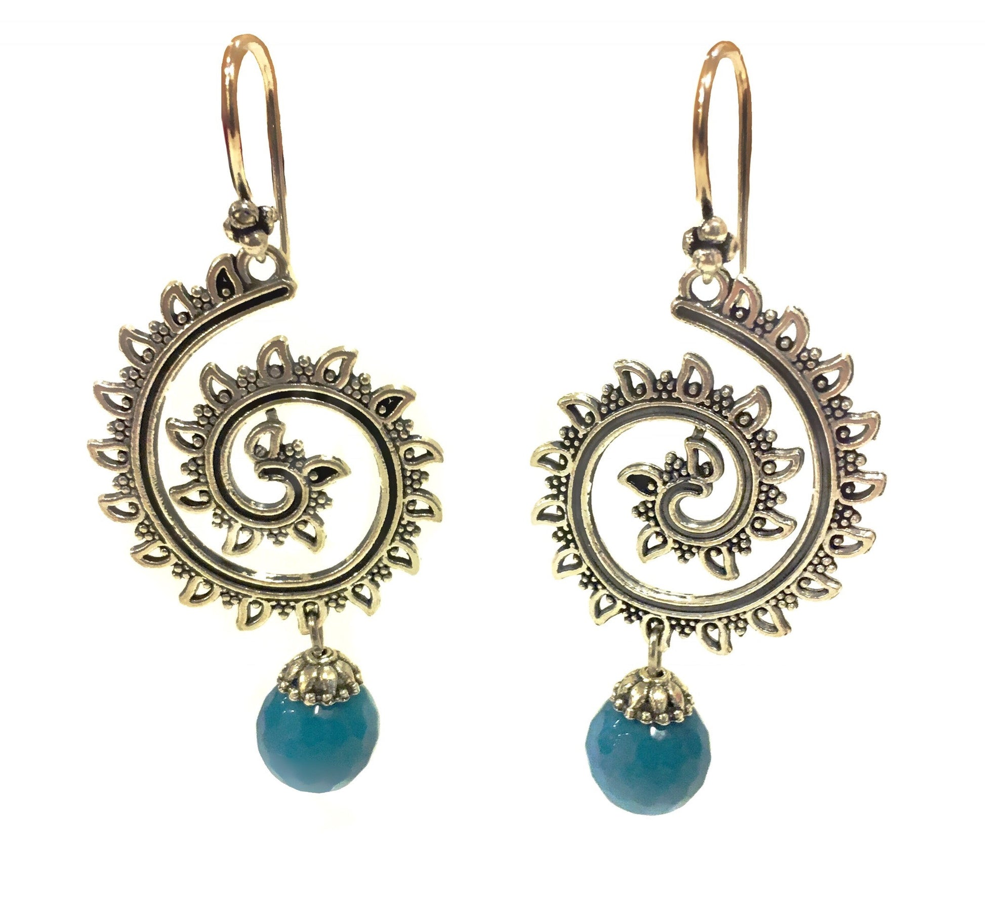 Twirl Drop Dangler Earrings - Silver & Blue