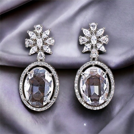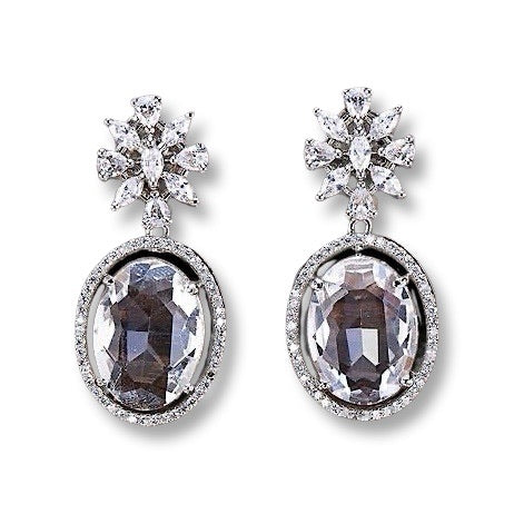 Drop earring CZ Earrings in full rhodium plating with a white stone.