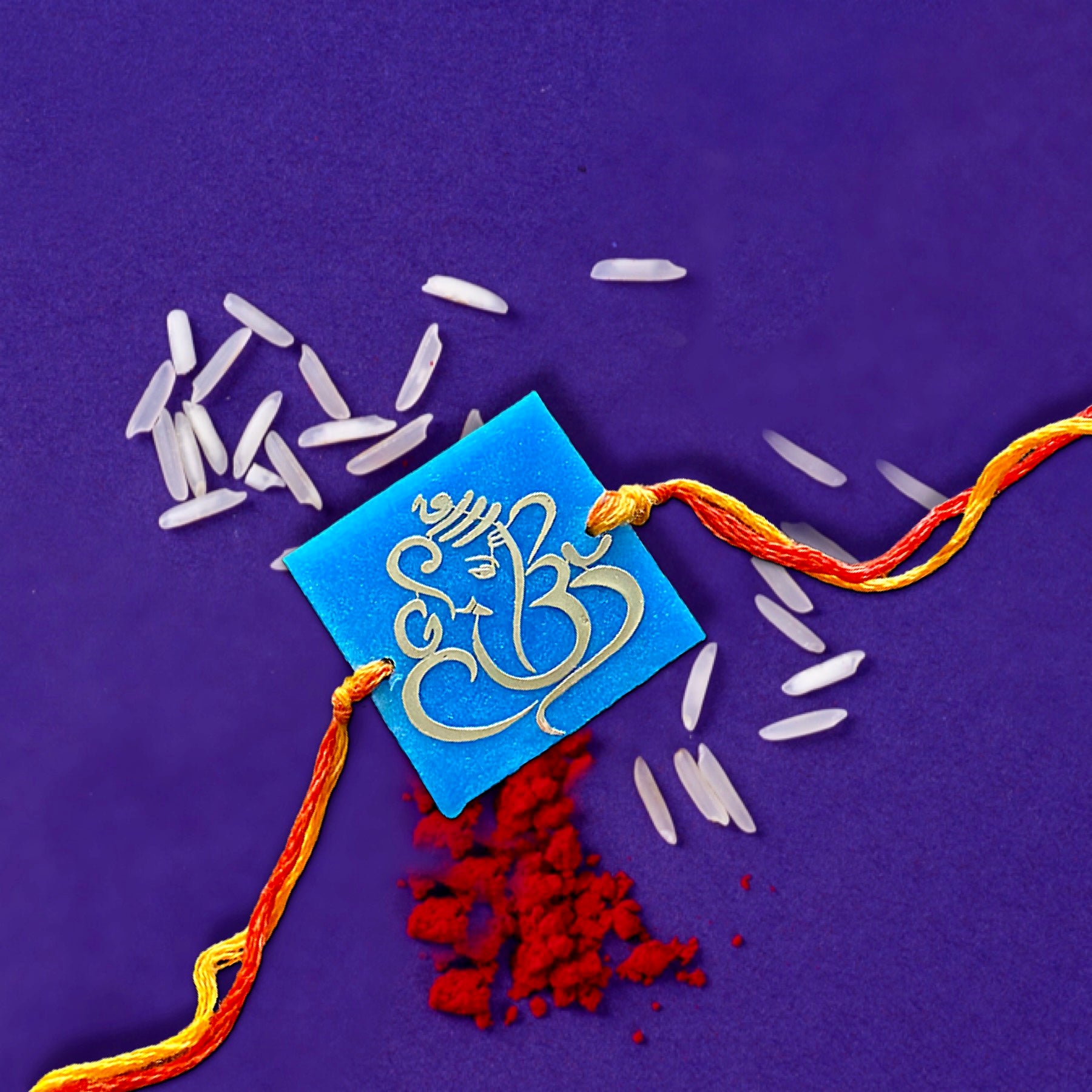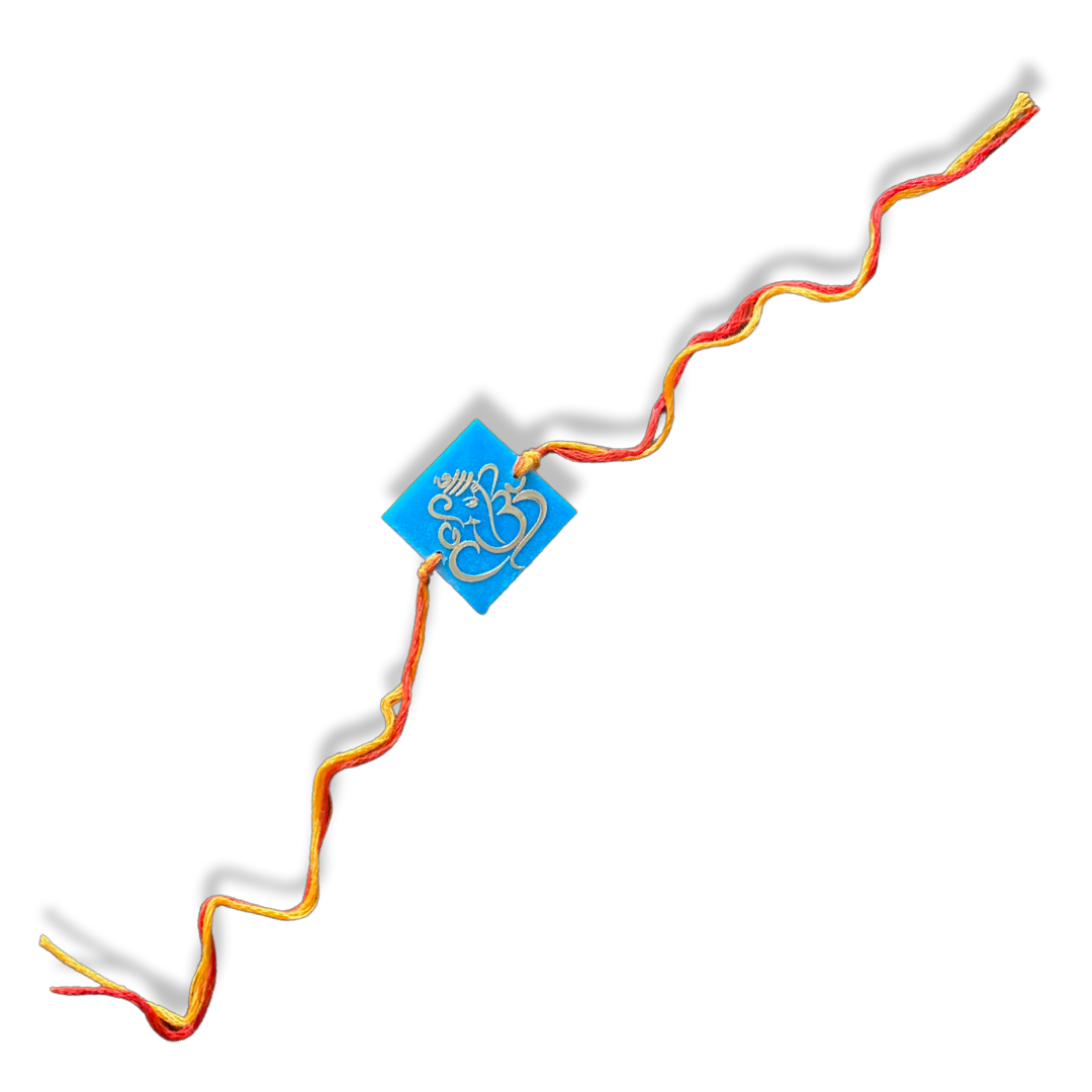 Ganeshji Gold Print on Resin Square Handmade Rakhi