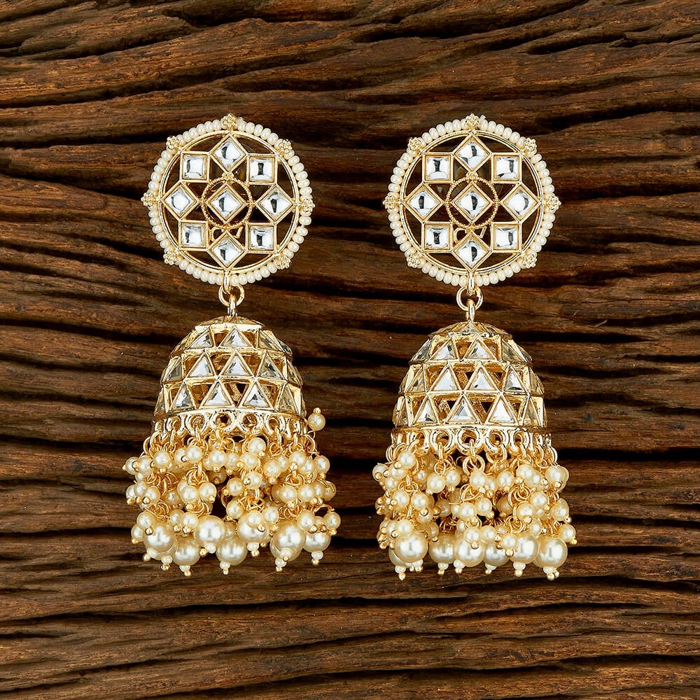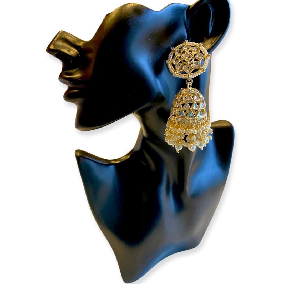 Nakshatra Kundan & Beads Large Jhumka Earrings - White