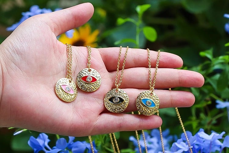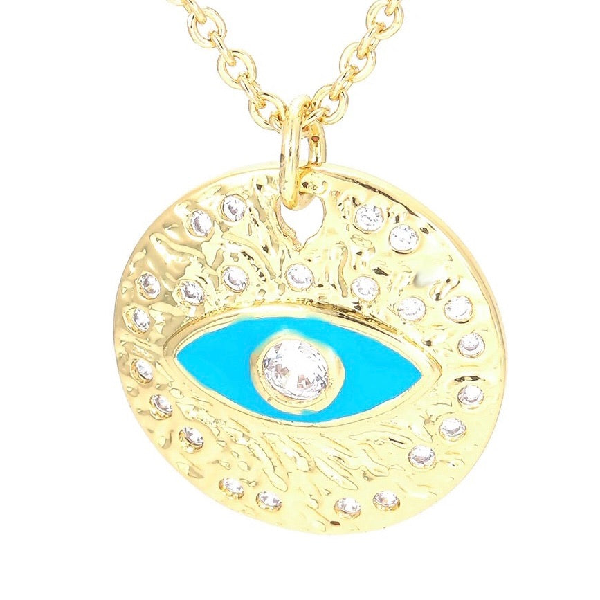 Ocean Enamel Evil Eye Pendant Chain Necklace Blue