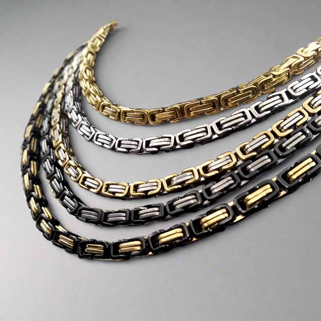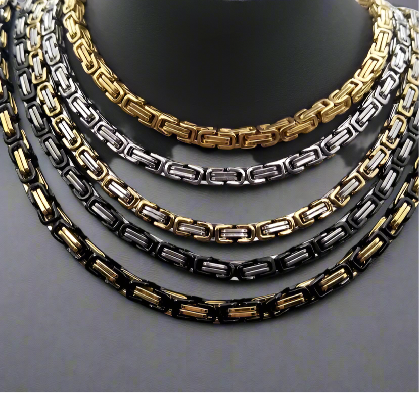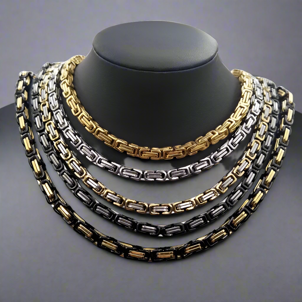 Expertly crafted for optimal durability and sleek style, our men's steel rope chains are the perfect addition to any wardrobe. Available in a variety of colours and thickness sizes, these chains are both versatile and timeless. Elevate your look with confidence with our quality rope chains.