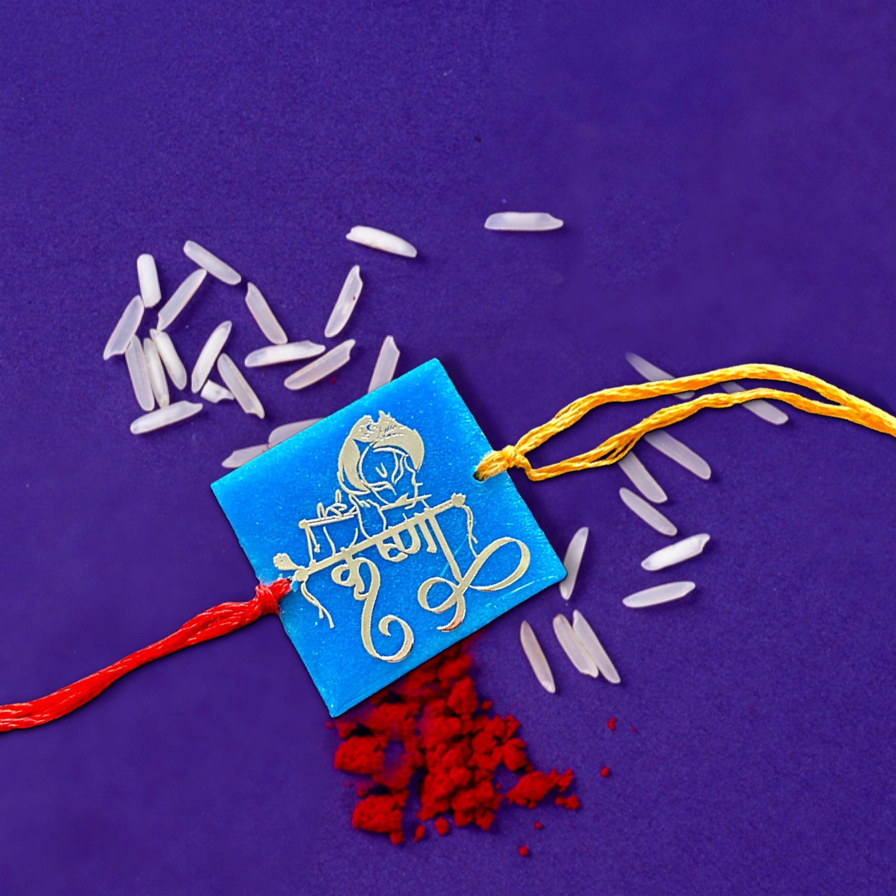 Shri Krishna Gold Print On Resin Square Handmade Rakhi